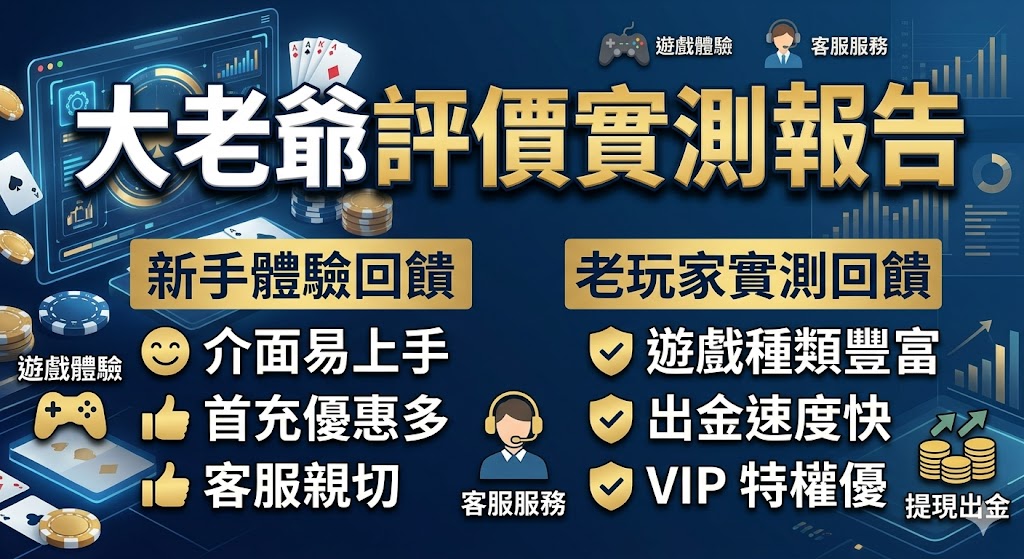 市場上存在許多代理競爭與抹黑行為。部分負面消息可能源於非法代理或玩家違反規則後的發洩。建議玩家參考具備公信力的實測報告,並從小額存款開始自行測試大老爺出金的穩定性。